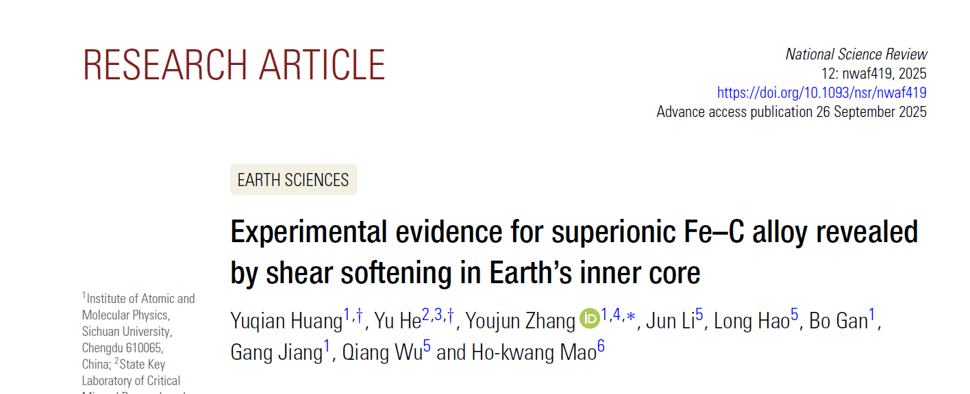 我所张友君研究员团队在《National Science Review》发文揭示地球固态内核的超离子态铁合金 近日,我所张友君研究...