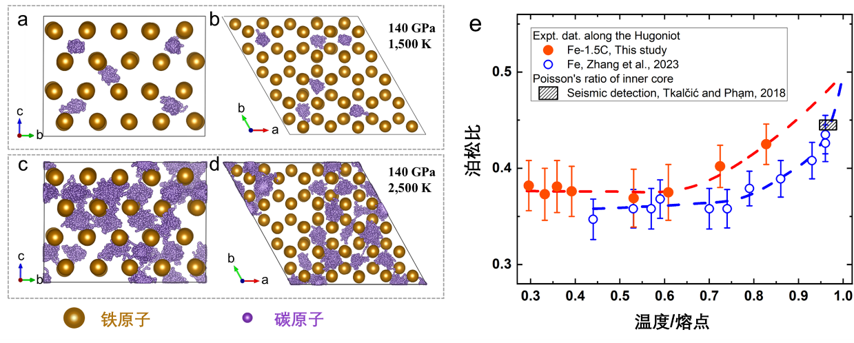 图1 Fe-1.5C合金高温下发生超离子态转变,引起泊松比上升,与内核地震波观测值接近