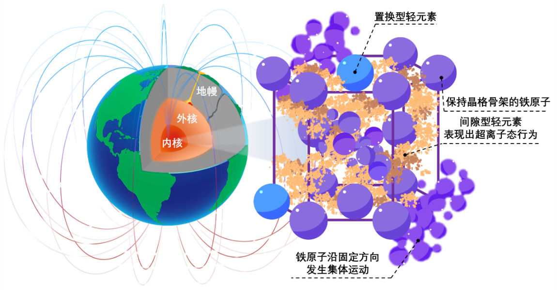该研究首次在实验上验证了轻元素超离子态转变是导致内核剪切软化的关键机制之一。该发现更新了对地球内核物理状态的传统认识,表明内核在微观尺度上兼具固态结构与动态扩散特征,为理解内核成分、结构及其在地球发电机与地磁场起源中的作用提供了全新视角,也将推动关于地球发电机机制、地磁场起源及行星内部演化历史的进一步研究。